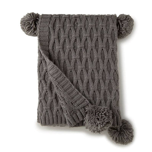 Pom Pom Sweater Knit Throw 50" x 60": GREY