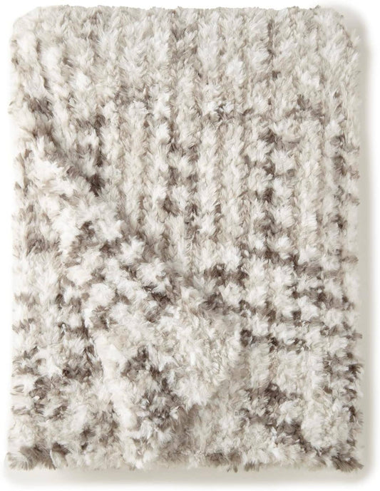 Ivory Gray Yarn Dye Faux Rabbit Fur Throw 50" x 60"
