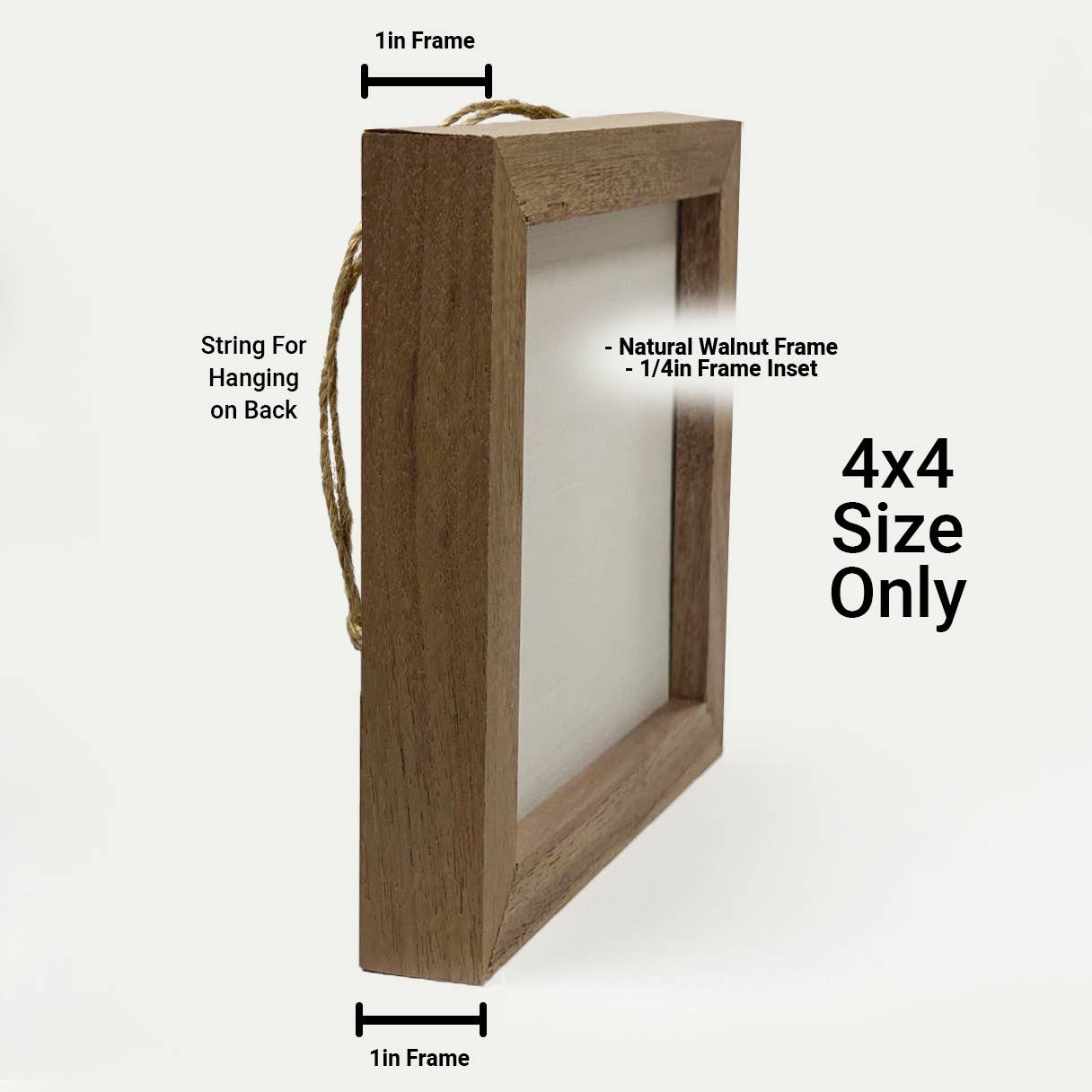 This unique piece is a simple way to bring beauty and charm to any wall or shelf within the home. It is made from high quality American hardwood planks with a hand painted face, and printed with UV cured ink, and is framed in a natural walnut frame.