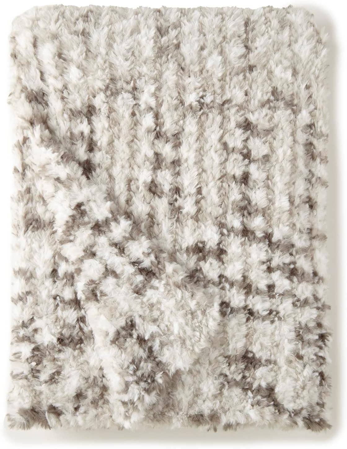 Ivory Gray Yarn Dye Faux Rabbit Fur Throw 50" x 60"