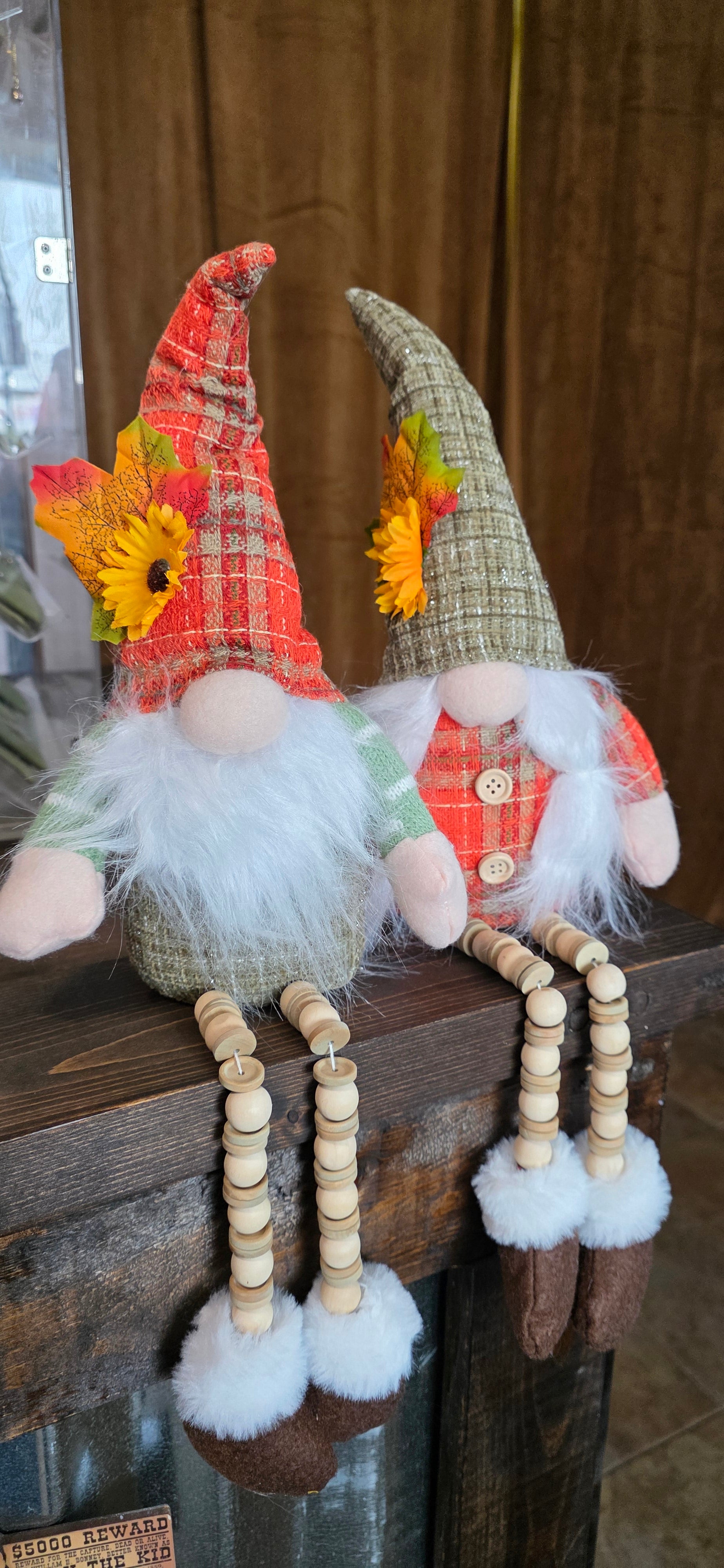Add a playful autumn charm with these fall-themed Shelf Gnomes, featuring wooden bead legs and dressed in festive orange and green. Available as a boy or girl, these whimsical figures bring fun and warmth to any shelf or mantel, making your seasonal decor uniquely inviting. Choose your favorite to brighten your home with cheerful character this fall.