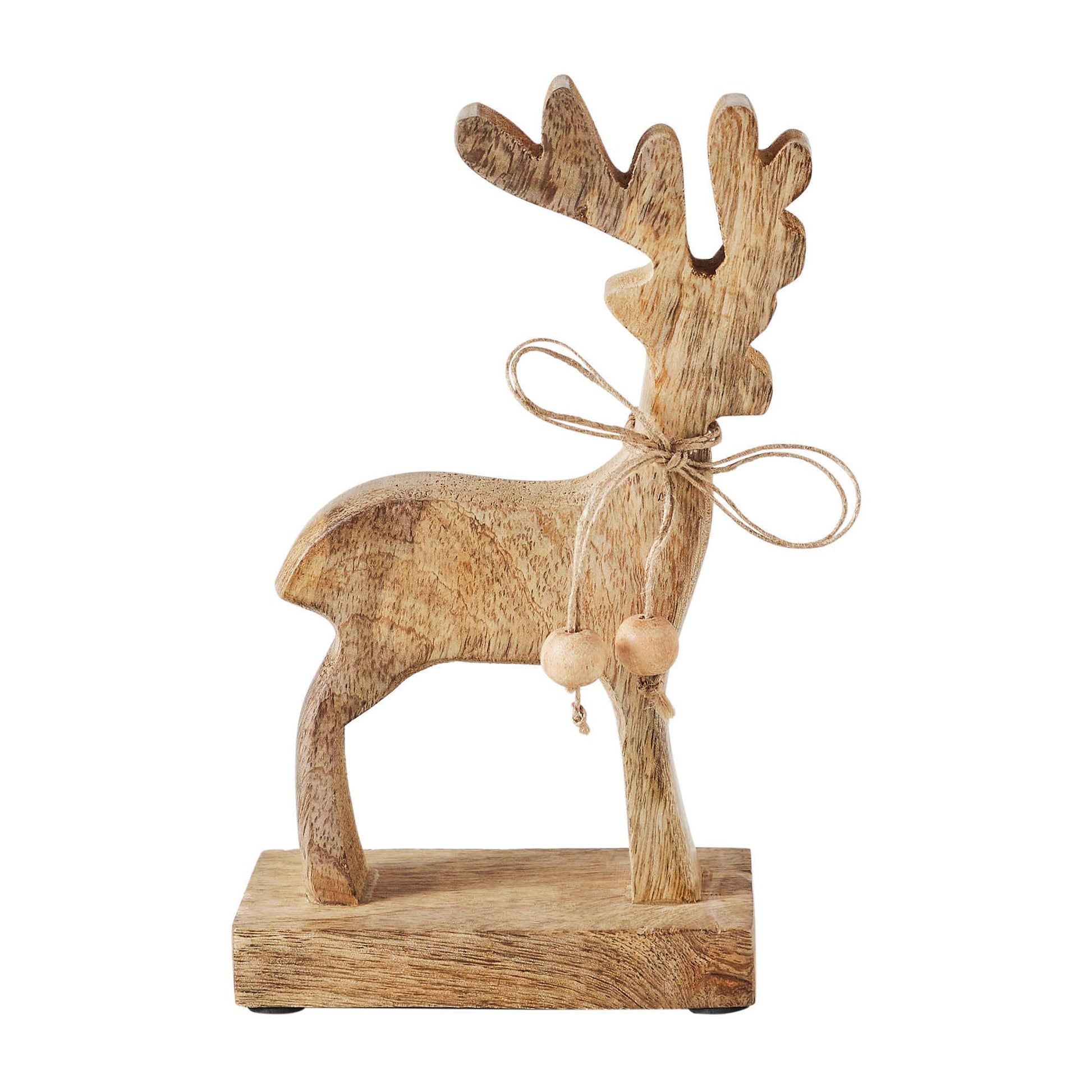 Add a touch of rustic charm to your winter and Christmas decor with this Tropical Wood Reindeer Wooden Figurine. Crafted from high-quality tropical wood, this figurine features a delightful cutout wood reindeer design adorned with a quaint twine bow, exuding a cozy country vibe. Measuring 8 inches in height, 4.5 inches in width, and 2.5 inches in depth, it's the perfect size for tabletop display, whether placed on shelves, tables, or mantels. The light tan finish of this wooden reindeer figurine evokes a warm and inviting atmosphere, ideal for infusing your home with the spirit of Christmas. Its handcrafted nature ensures that each piece is unique, with minor variations adding to its character and charm. Whether displayed in the bathroom, bedroom, dining room, entryway, kitchen, or living room, this figurine brings a touch of nostalgia and whimsy to any space, creating a cozy ambiance that welcomes the holiday season.